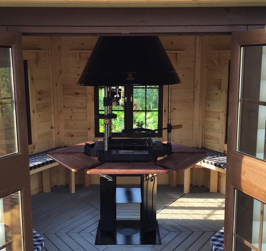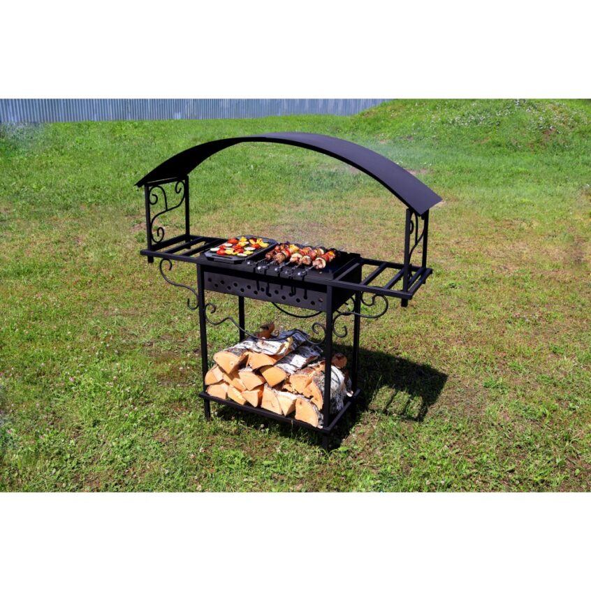 Внизу оборудована поленница для удобного хранения растопки. Над жаровней есть крыша, которая защитит продукты и огонь от непогоды.