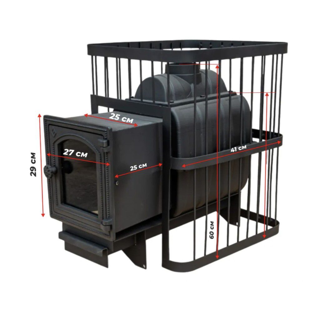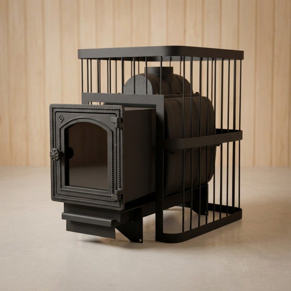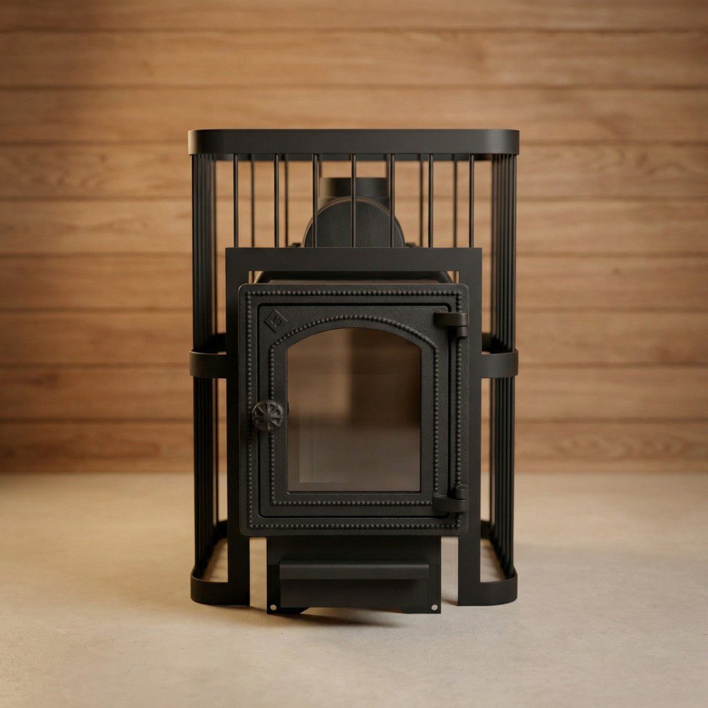 Печь банная ComfortProm ЧУГУН, для парной до 20 кубов, вес 72 кг, длина дров до 40 см, на 130 кг камней, чугунная дверь со стеклом