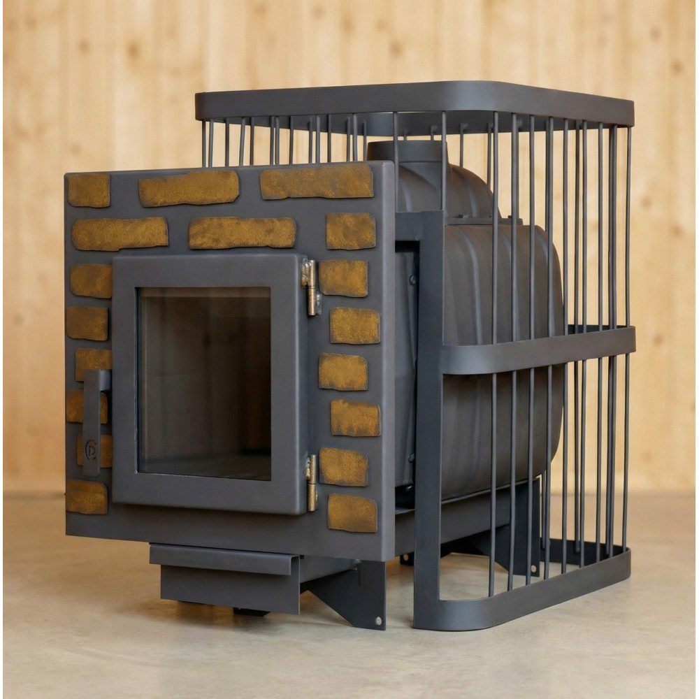 Печь банная ComfortProm ЧУГУН, для парной до 20 кубов, вес 74 кг, длина дров до 40 см, на 130 кг камней, дверь со стеклом декор