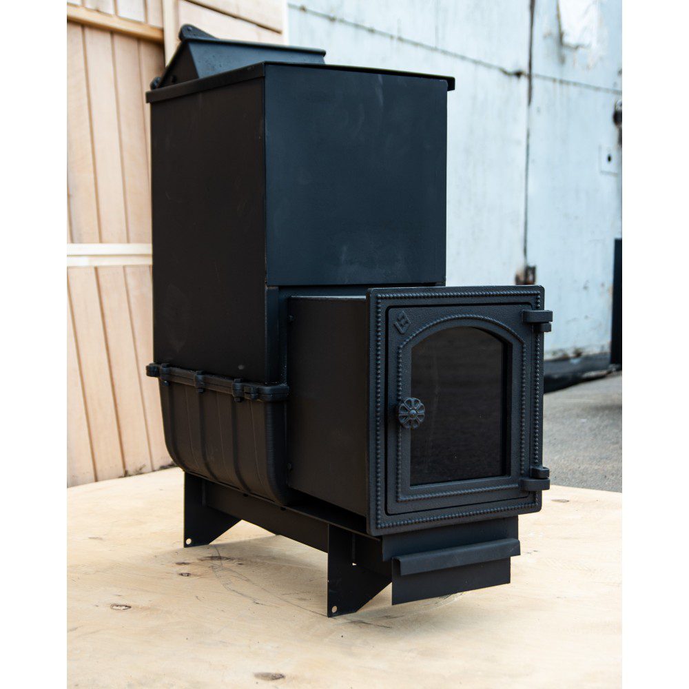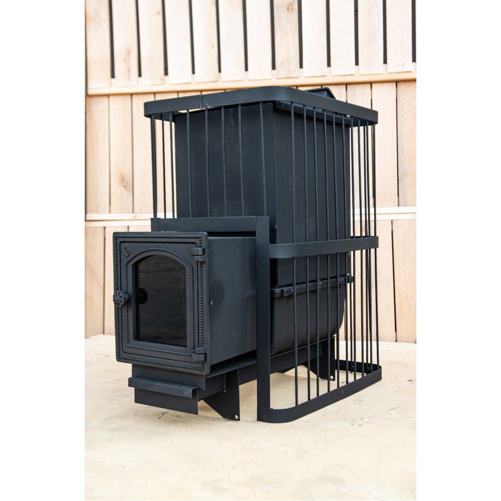 Печь банная ComfortProm ЧУГУН ПРЕМИУМ ЗАКРЫТАЯ КАМЕНКА, для парной до 26 кубов, вес 107 кг, длина дров до 50 см, на 200 кг камней, чугунная дверь со стеклом