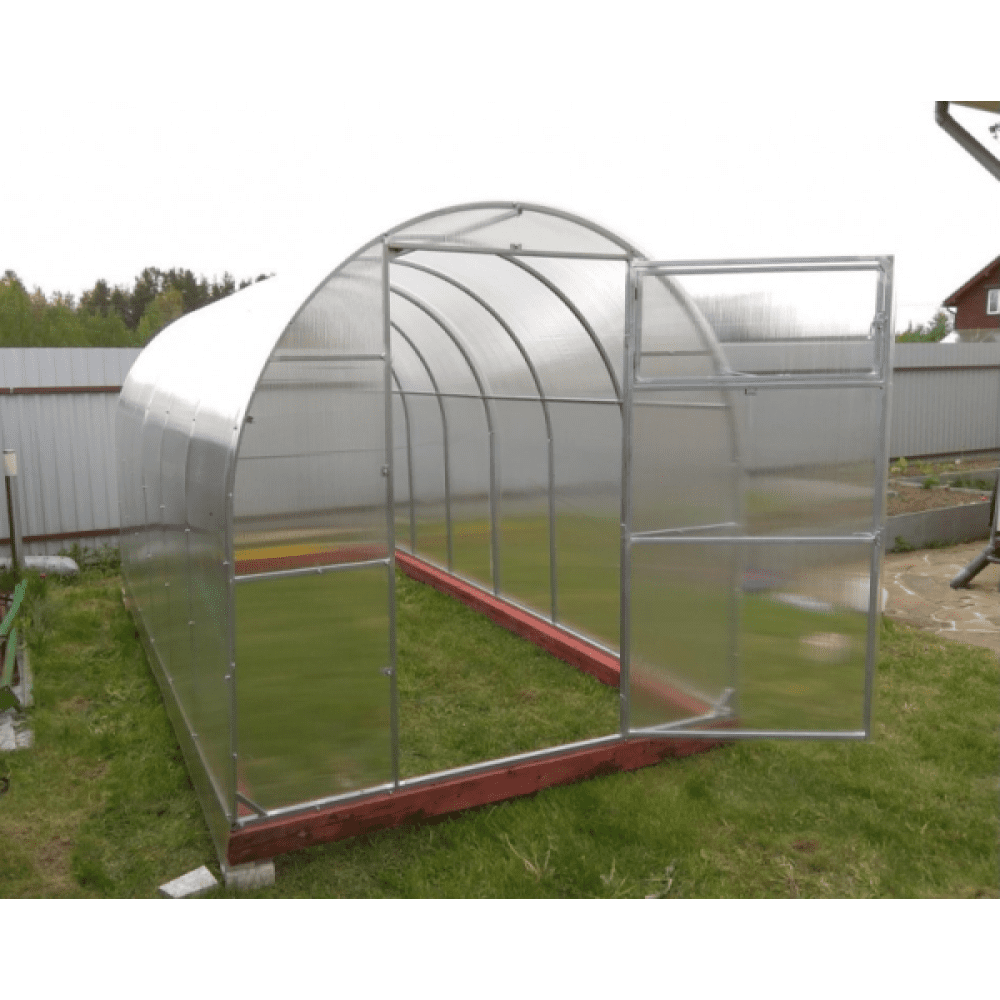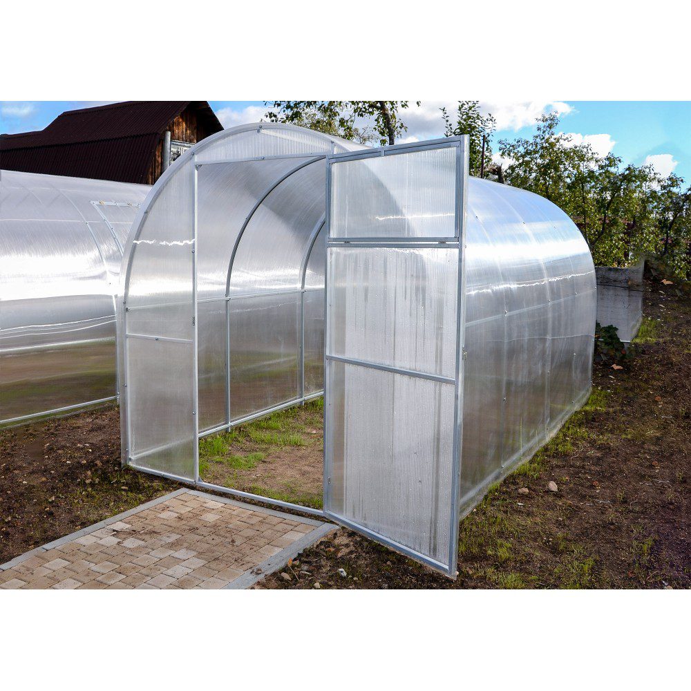 На каждом из двух торцов есть дверь и форточка. С их помощью Вы сможете без труда регулировать температуру в теплице и избежать перегрева или, наоборот, переохлаждения растений.